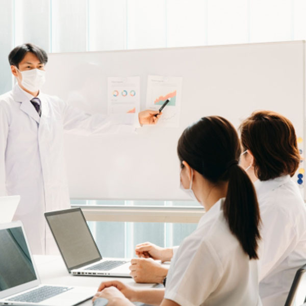 毎日、スタッフ全員でミーティングを行います。患者様の情報や業務内容などについて報告・共有します。
